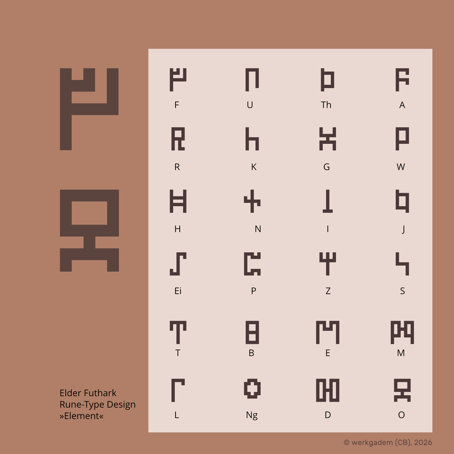 Ein besonderer Dank geht an den renomierten Göttinger Runologen Dr. Klaus Düwel (1935-2020), welcher mit seiner Arbeit und auch einem persönlichen Mailwechsel diese Arbeit prägte und neben anderen das wissenschaftliche Fundament bereitete, wichtiger noch, die Runen als historisches, kulturelles Erbe behandelte und viel Licht ins Dunkel brachte. Ausdrücklich soll hier aber der spielerisch künstlerische Ansatz hervorgehoben werden, welcher natürlich nicht im Sinne einer wissenschaftlichen Forschungsarbeit sein kann. Abschließend sei gesagt, daß sich werkgadem nicht die Liebe zu Kulturdingen durch politische Ideologien nehmen lässt, ja gerade das Wunderbare, Schöne und Eigenartige
